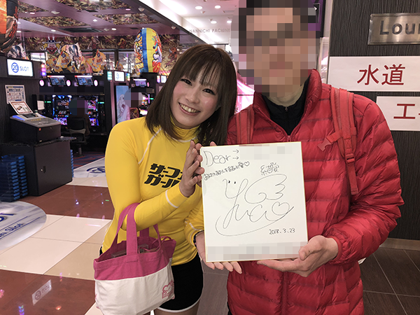 にぎわうパチンココーナーでも、ダイナミックなポーズを披露♪ 結愛ちゃんの満面の笑みに、たくさんのプレイヤーが癒されたのではないでしょうか♪