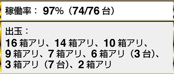 『ぱちんこCR北斗の拳7 転生』や『CRぱちんこ GANTZ』に18箱以上の出玉を確認。