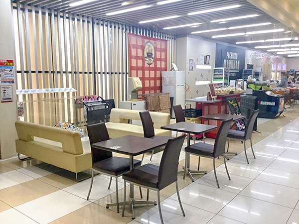 レストスペースはたくさんの椅子やテーブルが並べられ、実に落ち着いた雰囲気。加えてカフェも併設されており、小腹がすいた時は軽食も楽しめる。