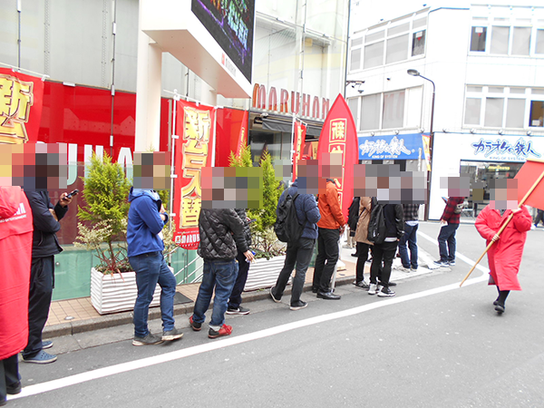 開店時には、一般入場も合わせて60名以上が集まっており、店の前は大勢のプレイヤーでにぎわっていた。