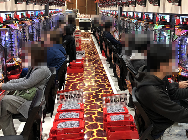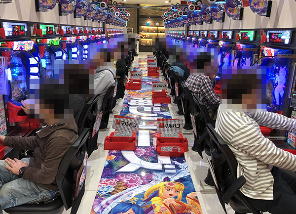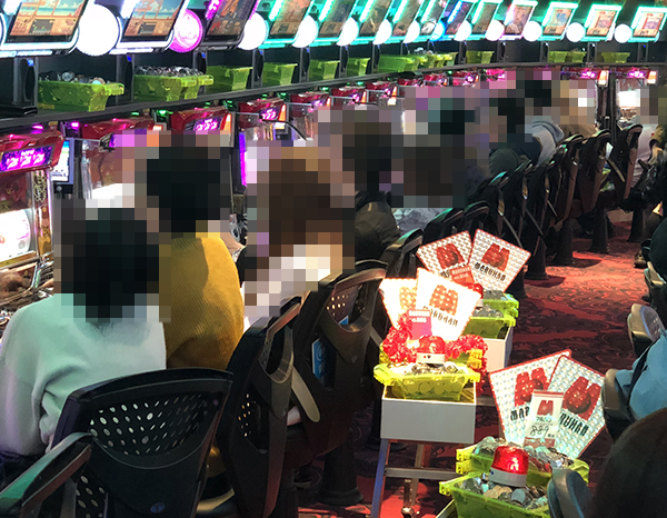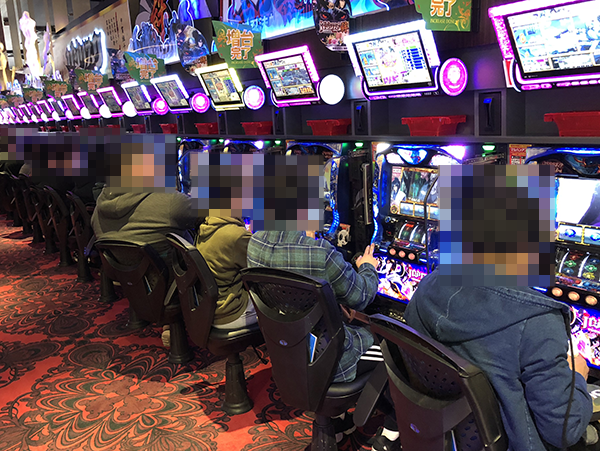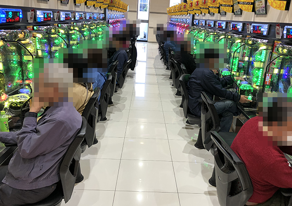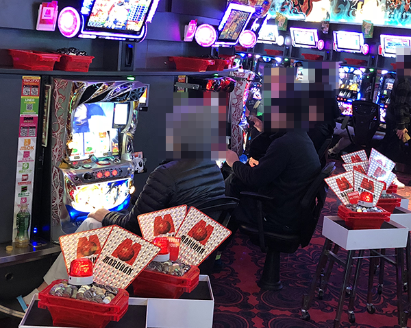 4円パチンコの「CRフィーバー戦姫絶唱シンフォギア」や海物語シリーズで遊技をはじめる姿もみられた。