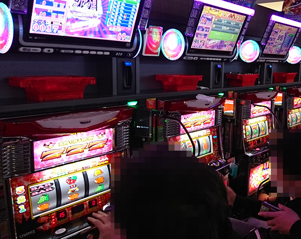 ホール内を進んでいくと、さまざまな機種に活躍をみせるプレイヤーの姿があった。