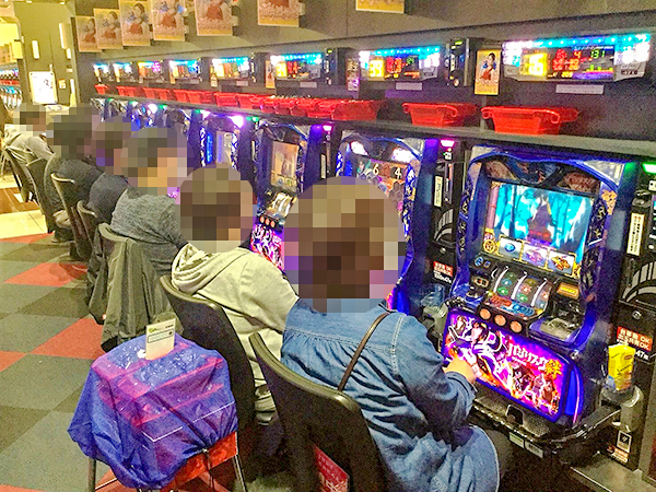 5円パチスロにも多くのプレイヤーが集まっており、機種を問わず活気づいていた。
