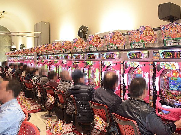 ホール内は大勢のプレイヤーでにぎわい、パチンコとパチスロの各シマから活気が感じられた。