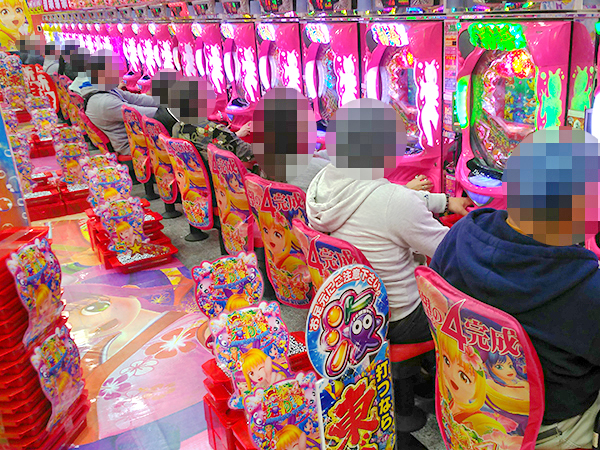 取材時は貸し玉料金に関係なく多くのプレイヤーが訪れており、各シマ明るい雰囲気に包まれていた。