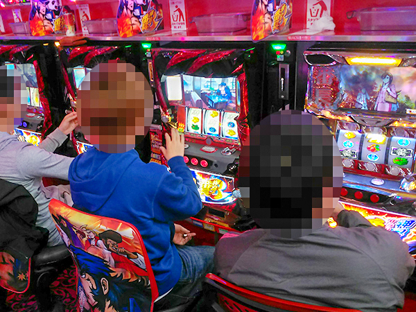 5円パチスロも活況。様々な機種で微笑ましいシーンを確認している。