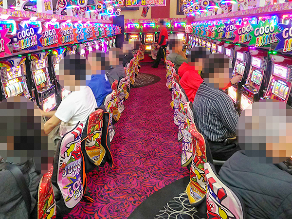 15時ごろの4円パチンコを見てみると、「CRスーパー海物語IN沖縄4」が盛況。機種の醍醐味を堪能するプレイヤーが多く、華やかなシーンをあちこちで目にしている。
