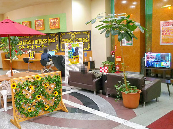 観葉植物が目を引くレストスペースは、広々として開放的。テレビやインターネットコーナーも用意されており、充実した休憩時間を過ごせそうだ。