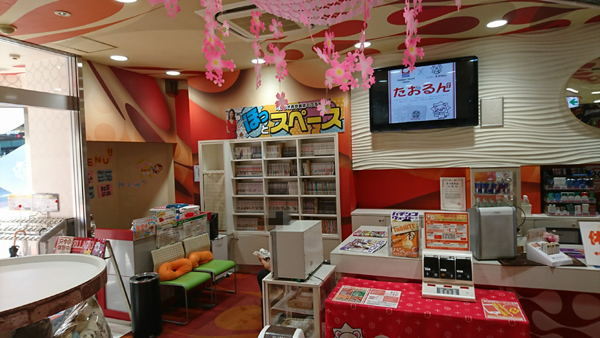 遊技の疲れを癒すのにもってこいの「ほっとスペース」には、マンガやおしぼりがおかれていて、何人ものプレイヤーがくつろいでいた。