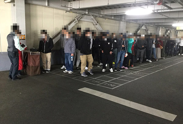 この日の入場抽選には約100名が参加しており、一般入場をあわせると150名前後のプレイヤーが長蛇の列をつくっていた。