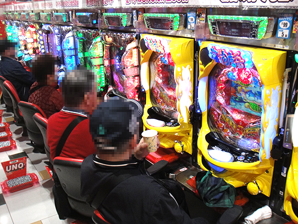 「CRフィーバー戦姫絶唱シンフォギア」や「CRぱちんこ魔法少女まどか☆マギカ」なども好評。シマ全体でにぎやかなシーンを見ることができた。