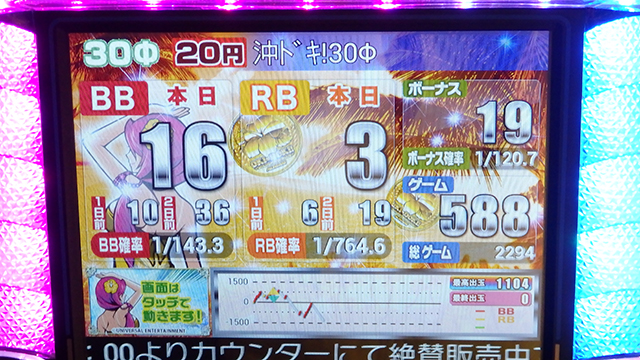 持ち玉状況が圧倒的に高かった沖ドキ!。
