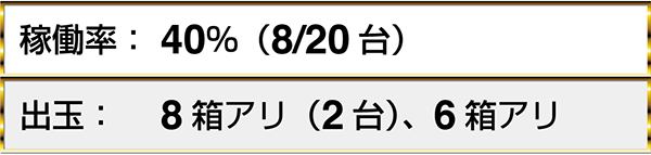 『CRスーパー海物語IN沖縄4』や『CR真・花の慶次2』などで、8箱以上の出玉を獲得しているプレイヤーがみられた。