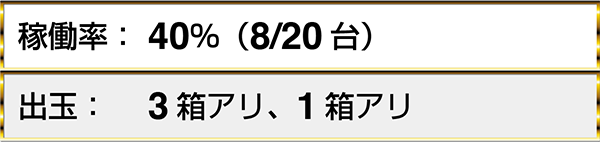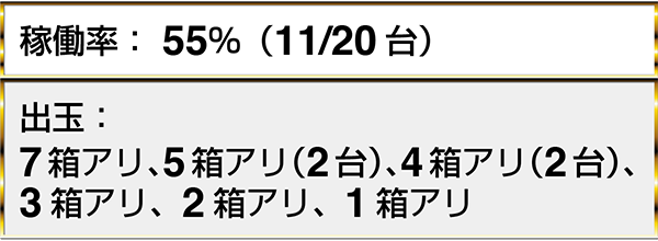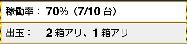 『沖ドキ!-30』は7割ほどのプレイヤーが1箱以上の出玉を獲得。取材時に確認したもっとも多い獲得出玉は7箱であった。