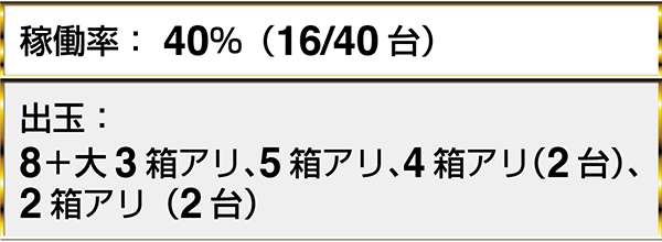 ・『CRスーパー海物語IN沖縄4』は16台中6台に持ち玉アリ。最大で8箱以上の出玉も確認