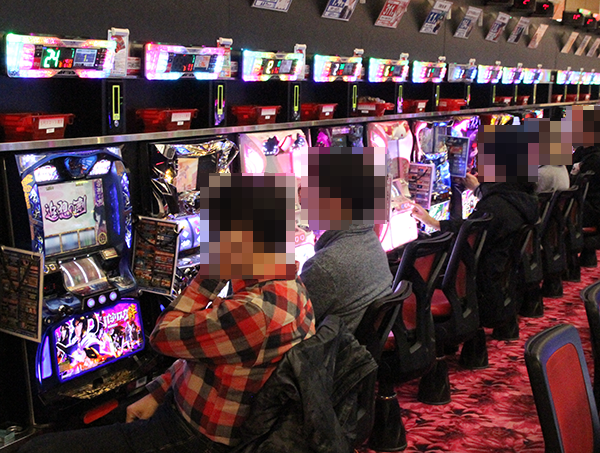 14時を過ぎた頃になっても、20円パチスロでは「バジリスク~甲賀忍法帖~絆」と沖スロが大にぎわいといった状況。朝イチからおなじ台を打っているプレイヤーもみられ、有意義な時間を過ごしていることが伝わってきた。