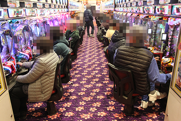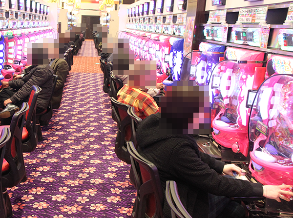 パチンココーナーをみると、4円パチンコの海物語シリーズや1円パチンコで遊技をはじめるプレイヤーが多かった。