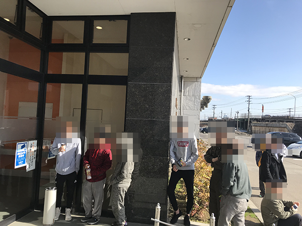 3月24日は開店前から約20名が集合。プレイヤー同士が楽しそうに会話をしているシーンもみられ、たくさんの常連から愛されているホールであることもうかがえた。