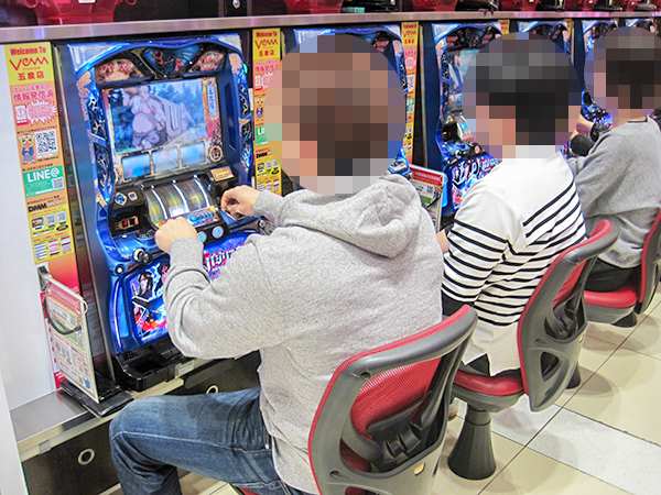 5円パチスロも活況。「押忍!サラリーマン番長」を筆頭に、微笑ましい光景を確認している。