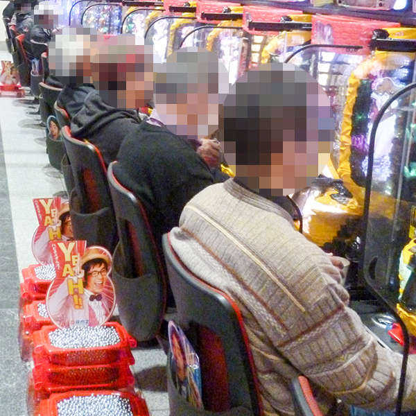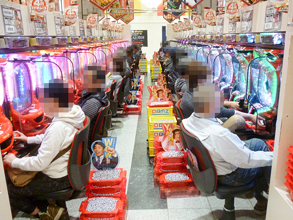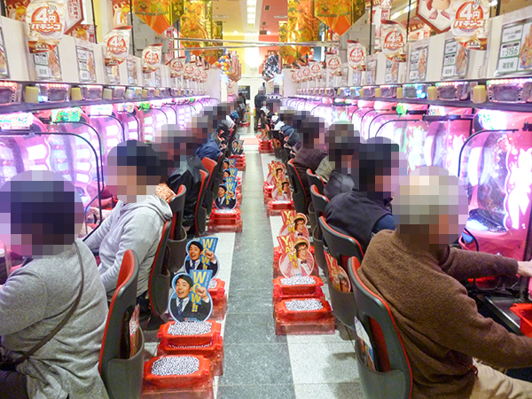 14時ごろの4円パチンコでは、「CR真・花の慶次2」や「CRフィーバー機動戦士Zガンダム」が微笑ましい状況。シマ内には大勢のプレイヤーが集まり、明るい雰囲気に包まれていた。