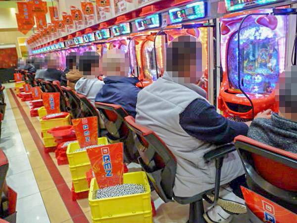 14時半ごろに4円パチンコの様子をうかがうと、「CR真・花の慶次2」や「CRサイボーグ009VSデビルマン」、「CRスーパー海物語IN沖縄4」などで、プレイヤーたちの活躍が目立っていた。