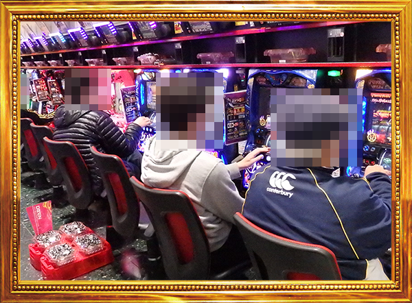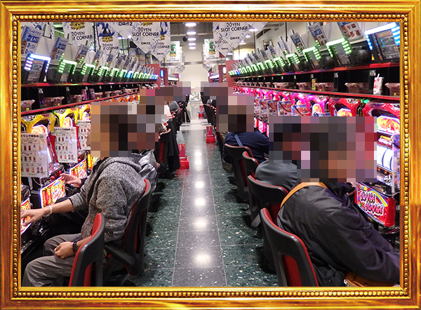13時をまわった頃の20円パチスロは、にぎやかな雰囲気に包まれていた。