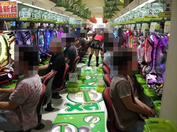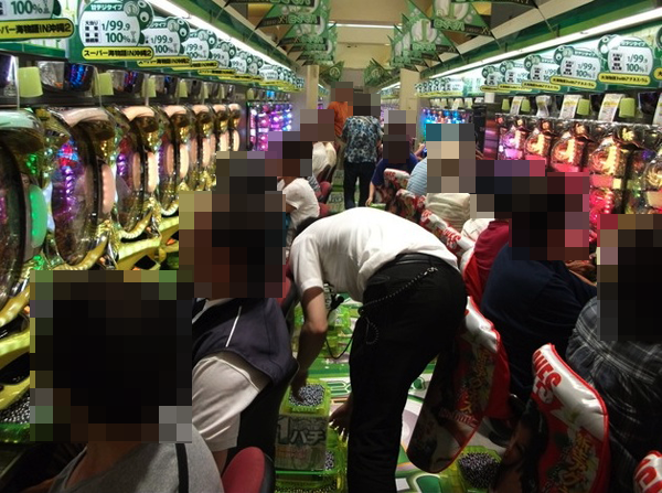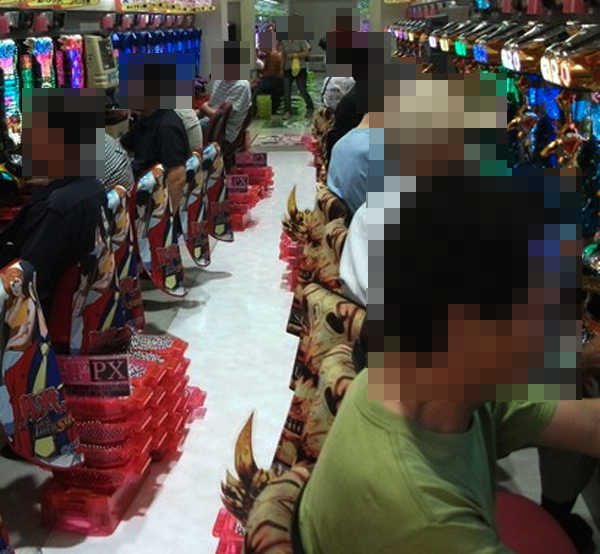 開店後、まず目についたのは盛況だった4円パチンコだ。