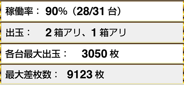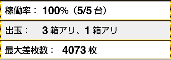 ・『BLACK LAGOON3』では5台中2名が持ち玉遊技。もっとも多かったのは3箱
