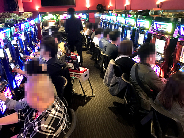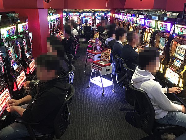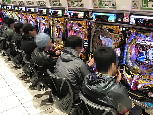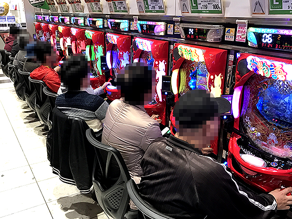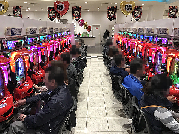 取材日の店内には、パチンコ・パチスロの様々な機種で遊技を楽しむ多くのプレイヤーの姿があった。