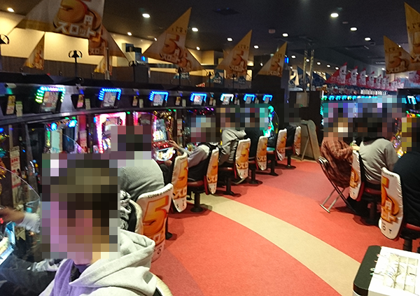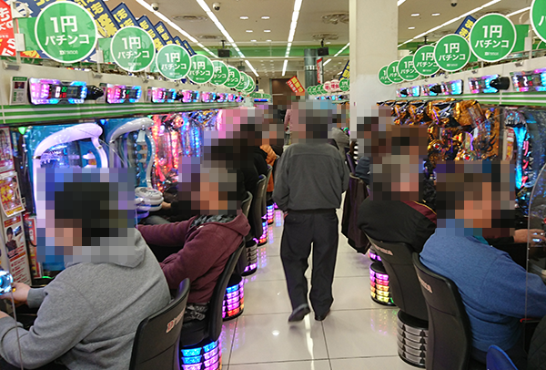 1円パチンコと0.2円パチンコの両方がたくさんのプレイヤーに楽しまれており、空き台を探すことがむずかしいほどの盛り上がりとなっていた。