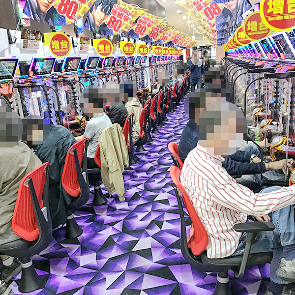 14時半過ぎに4円パチンコをチェックすると、「ぱちんこCR真・北斗無双」や「CRフィーバー戦姫絶唱シンフォギア」などが盛況。機種性能を上手く引き出すプレイヤーが見受けられ、シマの至る所で華やかな雰囲気が感じられた。