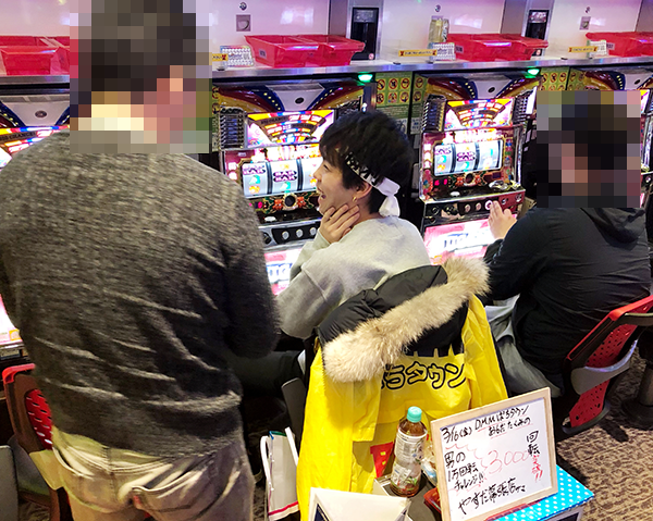 最後まで気を抜かずに、真剣な表情でレバーを叩いていたオモダたくみだったが…。