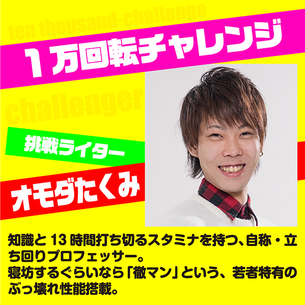 1週間前にこのホールでおこなったチャレンジは、1万回転未到達。