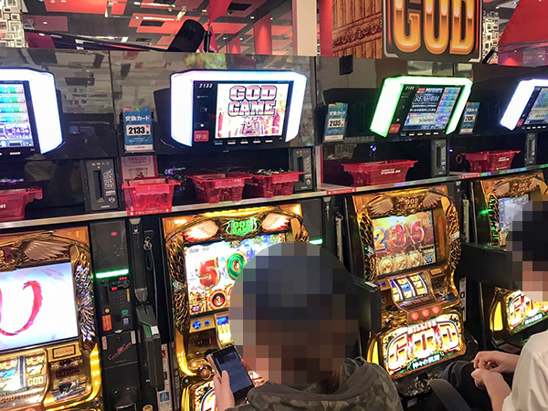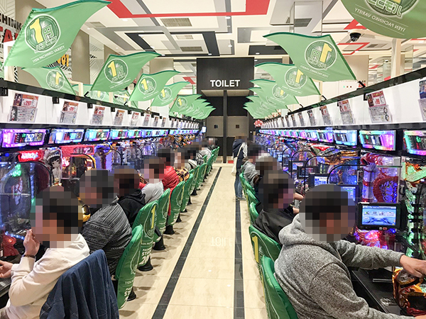取材時はプレイヤーであふれており、店内はパチンコ・パチスロを問わず笑顔でいっぱいだった。