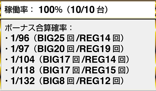 ・『マイジャグラーⅡ』にボーナス合算確率1/130以下が4台