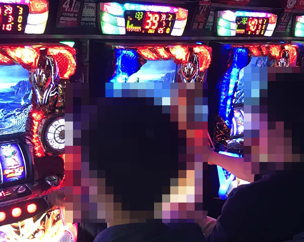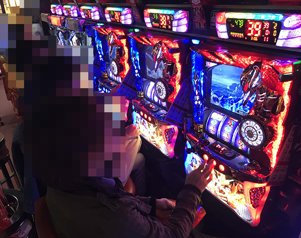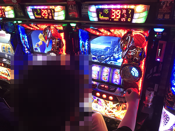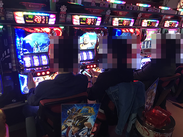「パチスロ聖闘士星矢 海皇覚醒」に理想的ともいえる展開で遊技をおこなうプレイヤーがおり、明るい表情を浮かべていた。