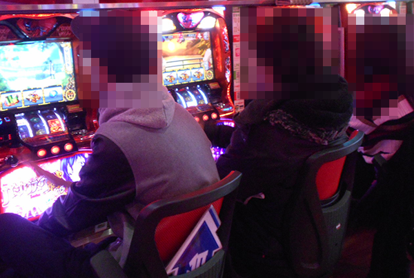 午後の1000円/47枚パチスロをみると、「押忍!番長3」が盛況。活躍をするプレイヤーが多く、シマ全体に華やかな光景が広がっていた。