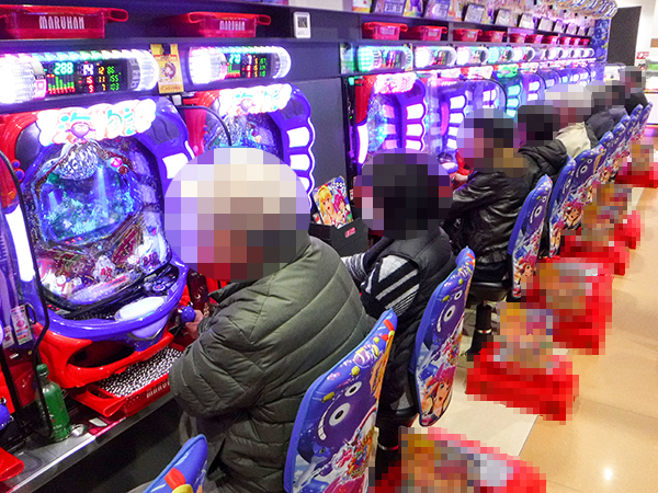 1円パチンコに目を移すと、こちらも全体的に高稼働。機種のラインナップが豊富なこともあって、各人とも好きな機種を存分に楽しんでいるようだった。