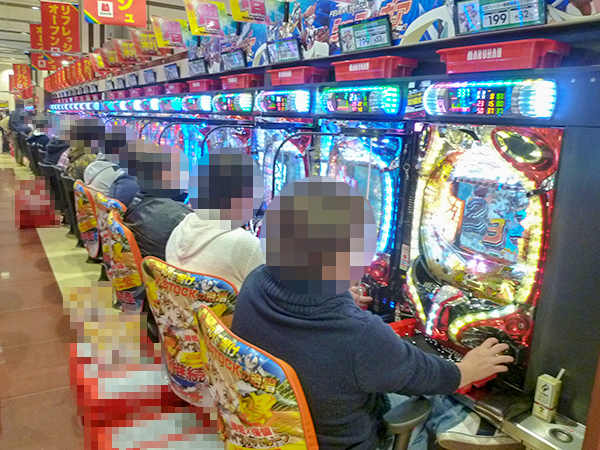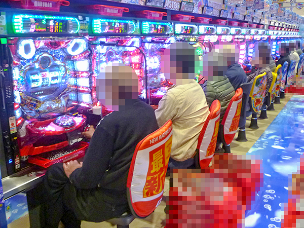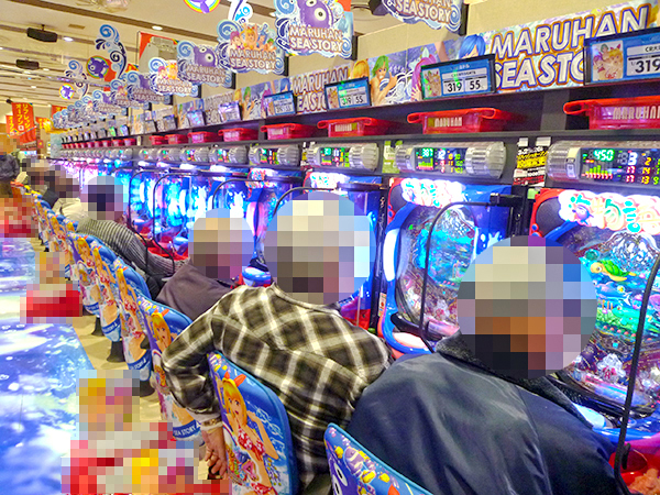 14時半を過ぎたころの4円パチンコでは、「CR大海物語4」や「CRドラム海物語 BLACK」などの海物語シリーズを中心に盛況。機種のポテンシャルを引き出すプレイヤーを多数目撃している。
