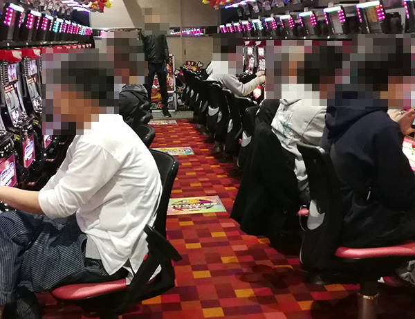おなじくボーナスタイプである「クランキーセレブレーション」や「バーサス」も支持されており、ホール内のすみずみまで笑顔で埋め尽くされている印象を受けた。