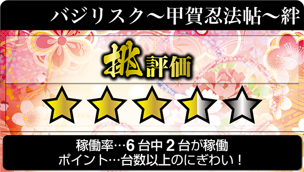 「パチスロ北斗の拳 転生の章」や「押忍!サラリーマン番長」などの稼働率も高い。プレイヤーのにこやかな表情が、満足度の高さをあらわしていたといっても過言ではないだろう。