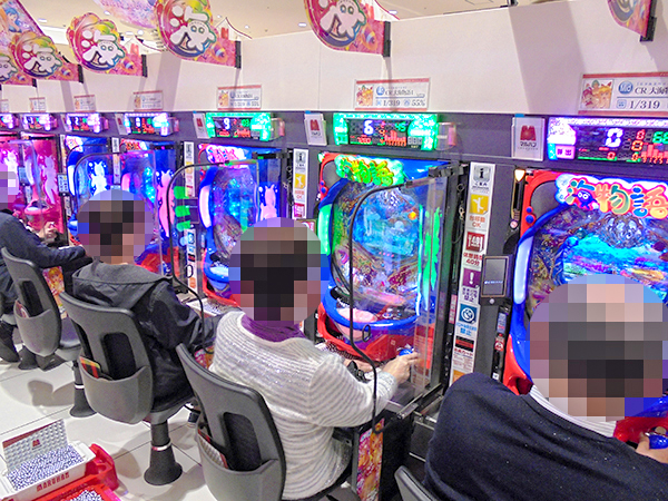 取材時、店内には既に多くのプレイヤーが集結。各人、あふれんばかりの笑顔を浮かべながら遊技を楽しんでいた。
