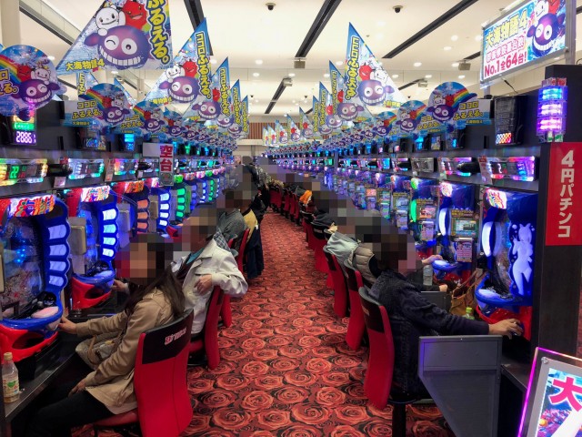 入店するなり我々が目にしたものは、パチンコ588台・パチスロ416台にも関わらず稼働率9割オーバーという圧巻の光景であった。