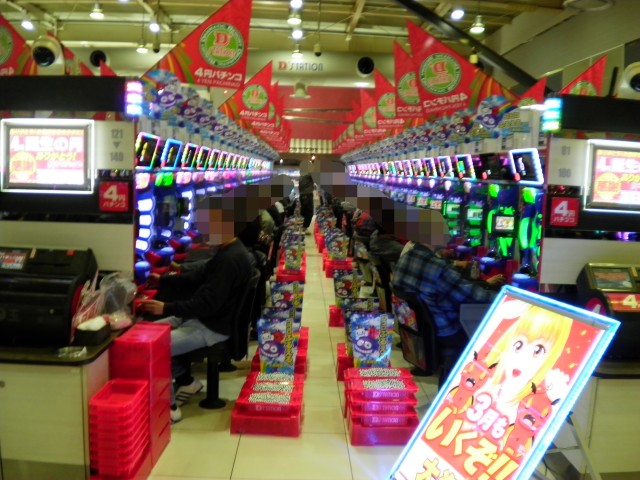 『CR大海物語4』の通路は、数多くのドル箱で埋めつくされていた。