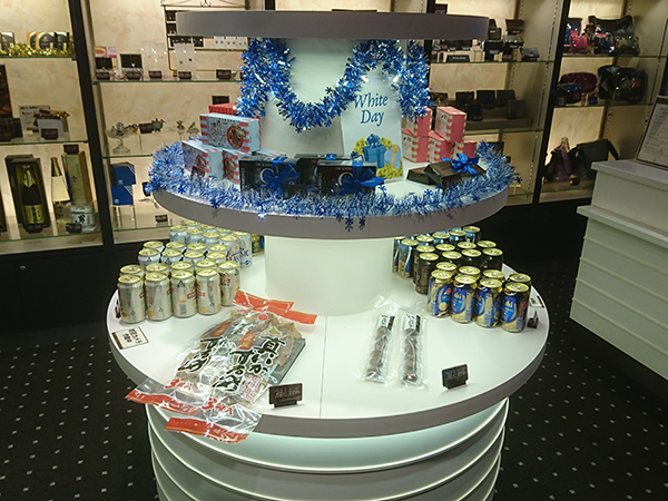 品揃えが豊富な賞品コーナーも魅力的。取材時には、ホワイトデーにちなんだ装飾が施されており、季節を感じられる空間にもなっていた。