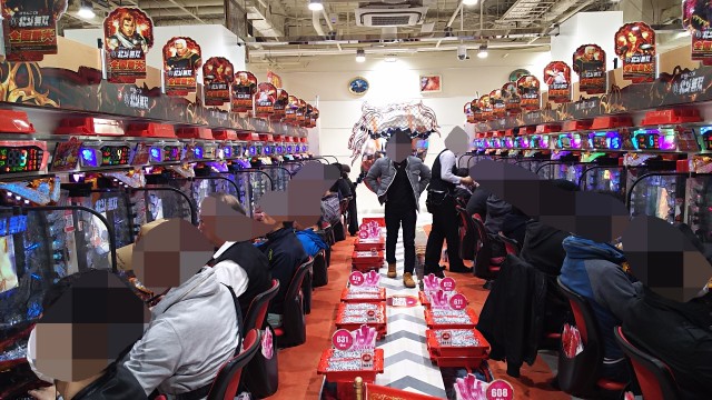 こんな身震いするような台もあり、通路にはドル箱がひしめきあっていた。