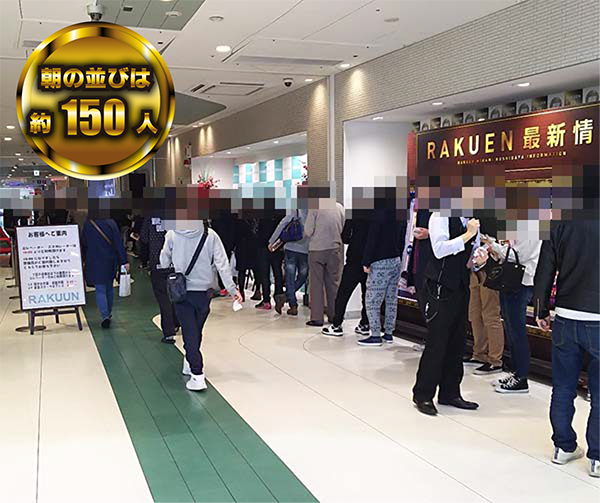 この日、入場抽選に参加していたプレイヤーは約50名。一般入場で開店時間を待つプレイヤーは100名を超えており、朝イチからにぎやかなムードに包まれていた。