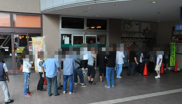 開店前の様子を見てみると、1階の入口には50名前後、2階の入口には40名前後のプレイヤーが集合。並んでいる場所によってプレイヤーの年齢層などに違いはみられたが、朝イチから大きく賑わっているという点は共通していた。