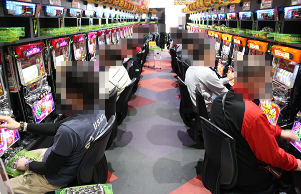 店内では大勢のプレイヤーが遊技を楽しんでおり、さまざまな場所に笑顔が広がっていた。