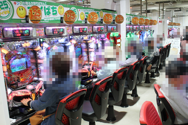 16時ごろのパチンココーナーでは、1.25円パチンコが特に人気。